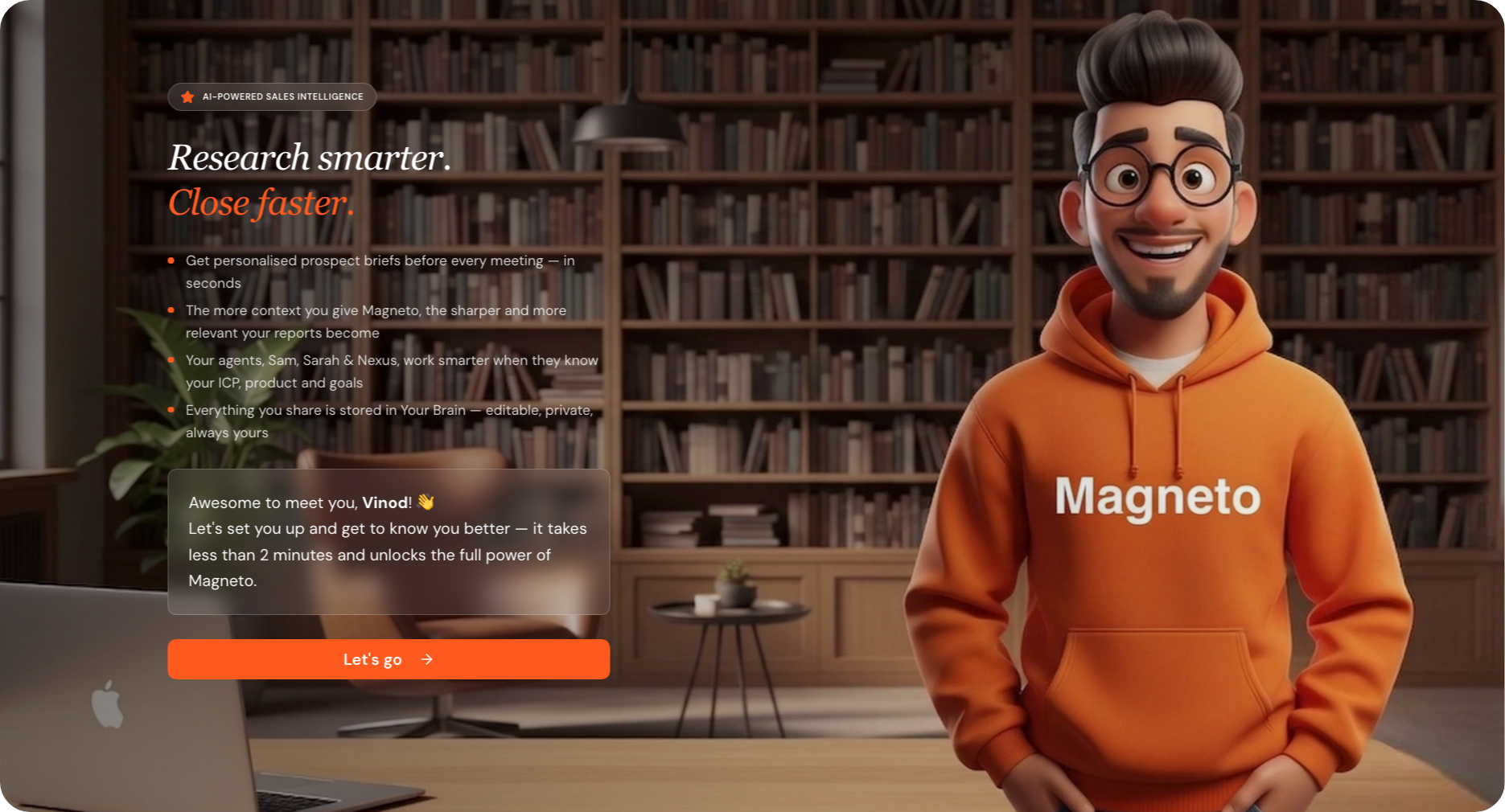 Surface buying signals, decode personality, and understand the exact business context of every prospect. Magneto tells you what matters to them — so you arrive with relevance, not a pitch.