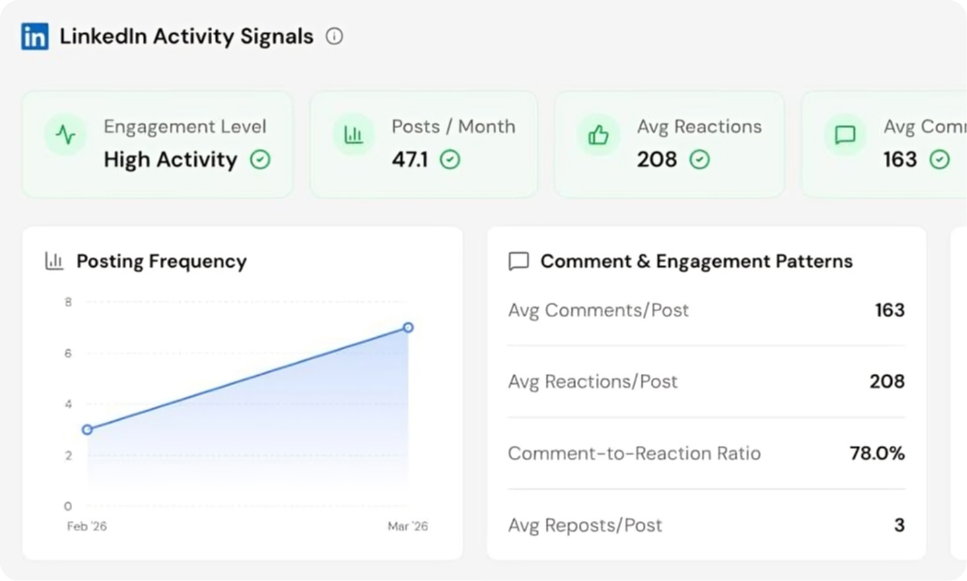 - LinkedIn activity frequency + scored topic interests